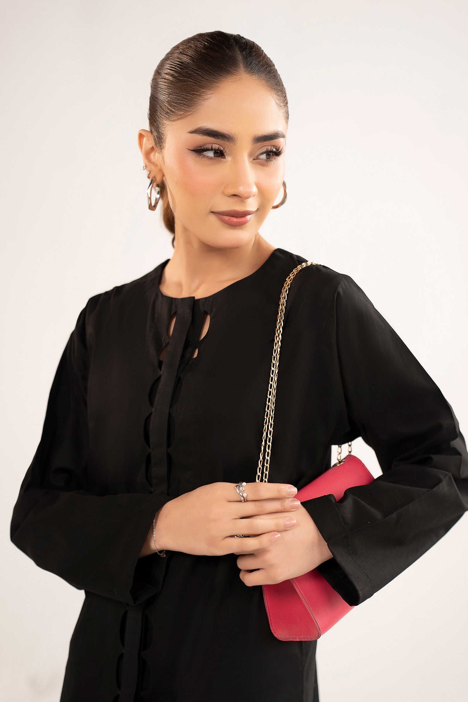 Scoop Neckline With Scalloped Placket