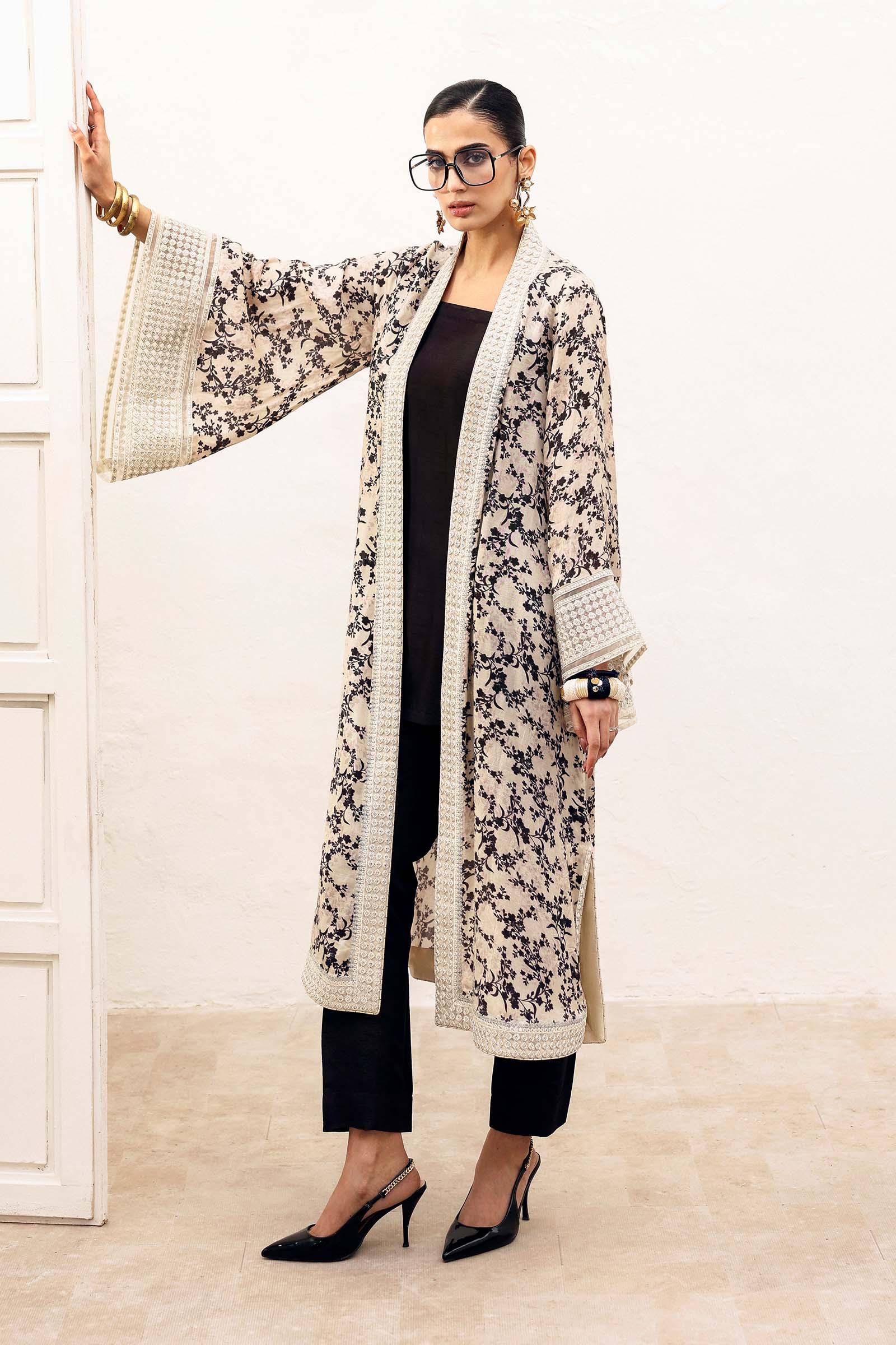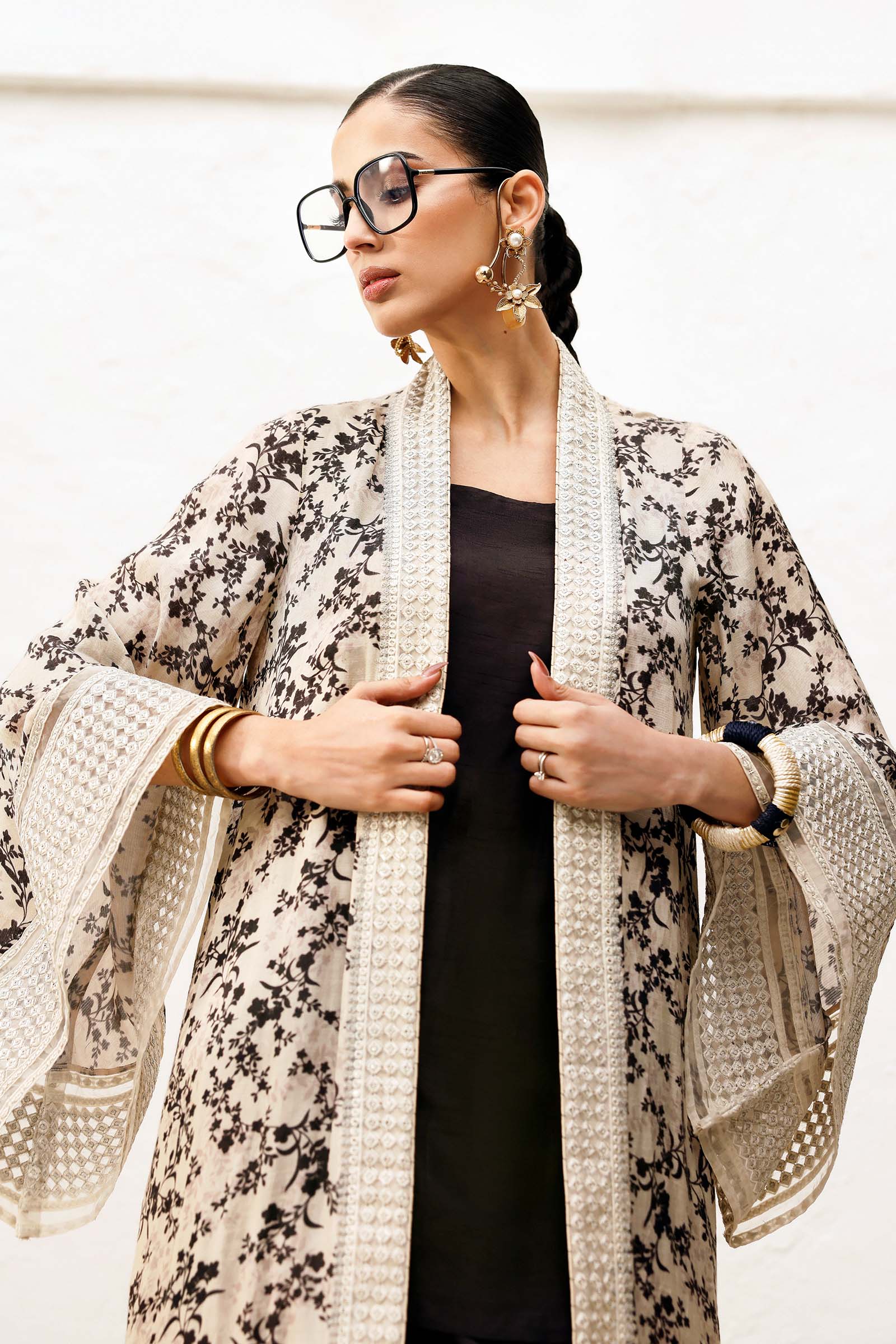 Embroidered Front-Open Slit, Side Seams & Border